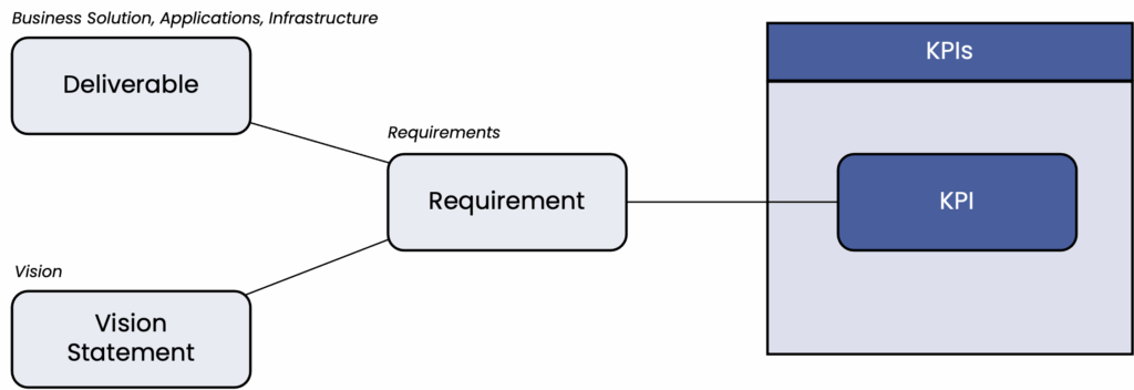 During implementation, all project decisions are continuously reviewed against the original vision statements, and the results are measured against them. To achieve this, the most important requirements for success are translated into clear and easily trackable KPIs.